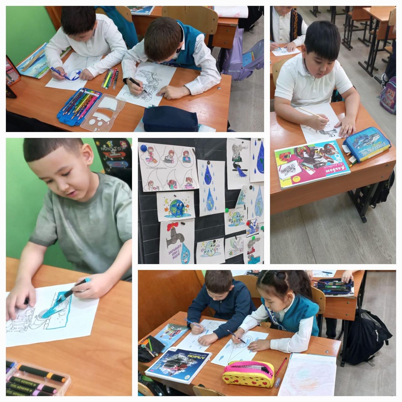 В начальной школе были проведены классные часы на тему: «Вода - источник жизни», приуроченный по сбережению воды, учащиеся рисовали, делились своими мыслями о сбережении воды.