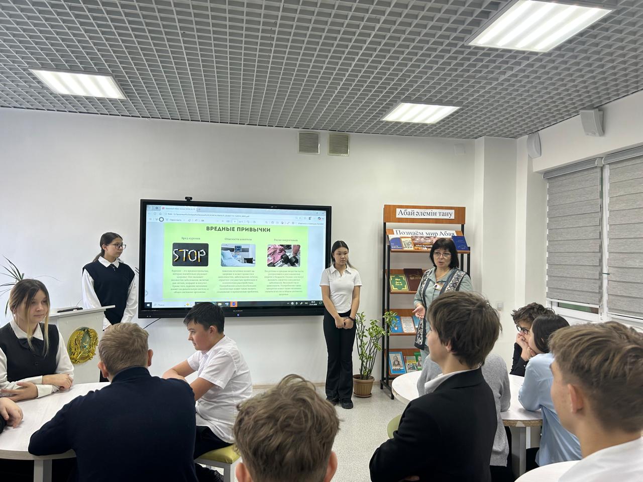 21 января 2026 г ученицы 8 «А» класса Нурбекова Н и Наржан Ж подготовили презентацию на тему: ЗОЖ «О вреде алкоголя, курения, электронных сигарет, наркотиков». Коренева Е.В. медработник школы рассказала учащимся о важности правильного и качественного питания.