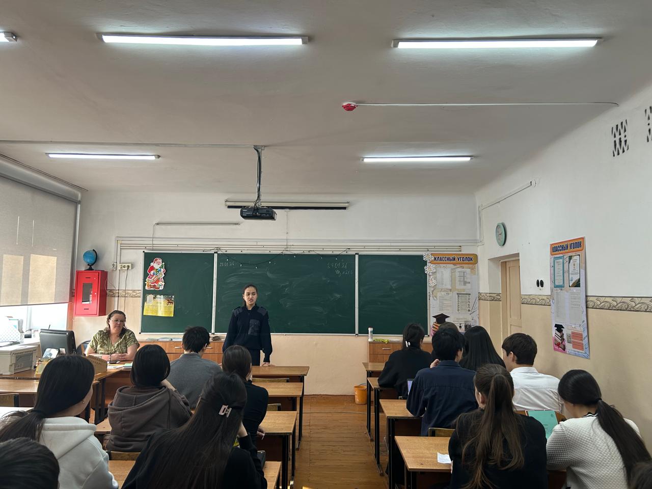 27 января 2026 г старший лейтенант полиции УИП ГЮП ООБ УП г.Семей Тюменова Д. Н. провела профилактическую беседу с учащимися старших классов в рамках месячника «Закон и порядок» на тему: “Дети в ночном городе”@policesemey